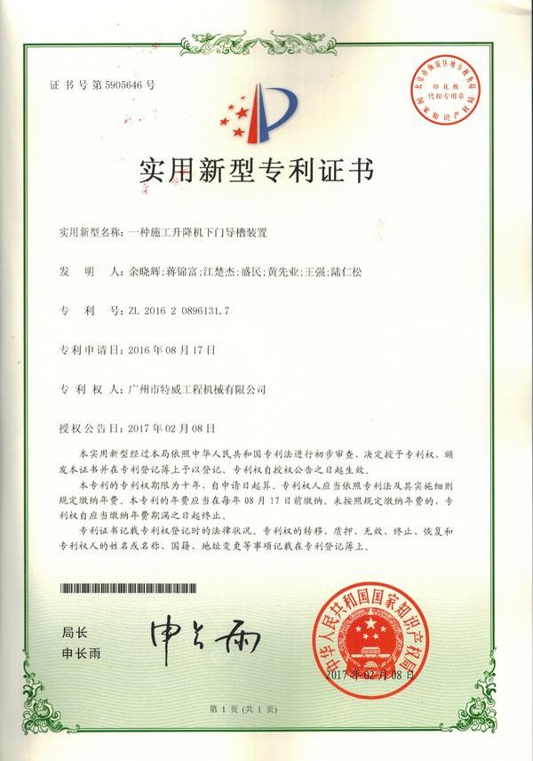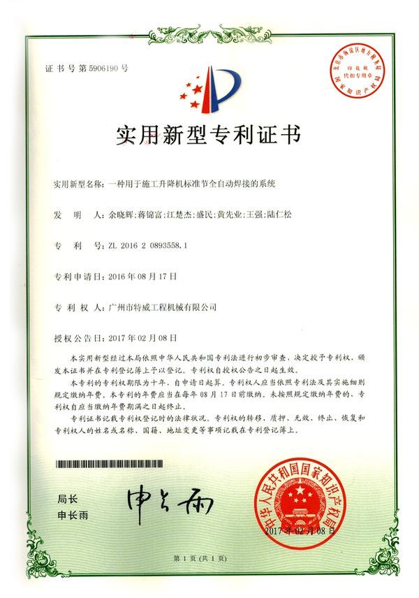 廣州市特威工程機械有限公司地處廣州市白云區神山鎮,廣清高速神山出口附近,是一家施工升降機的專業生產廠家。公司成立于2011年,占地100000多平方米,注冊資金1060萬元,現有員工300余人其中工程技術人員33人,高級技術人員52人。